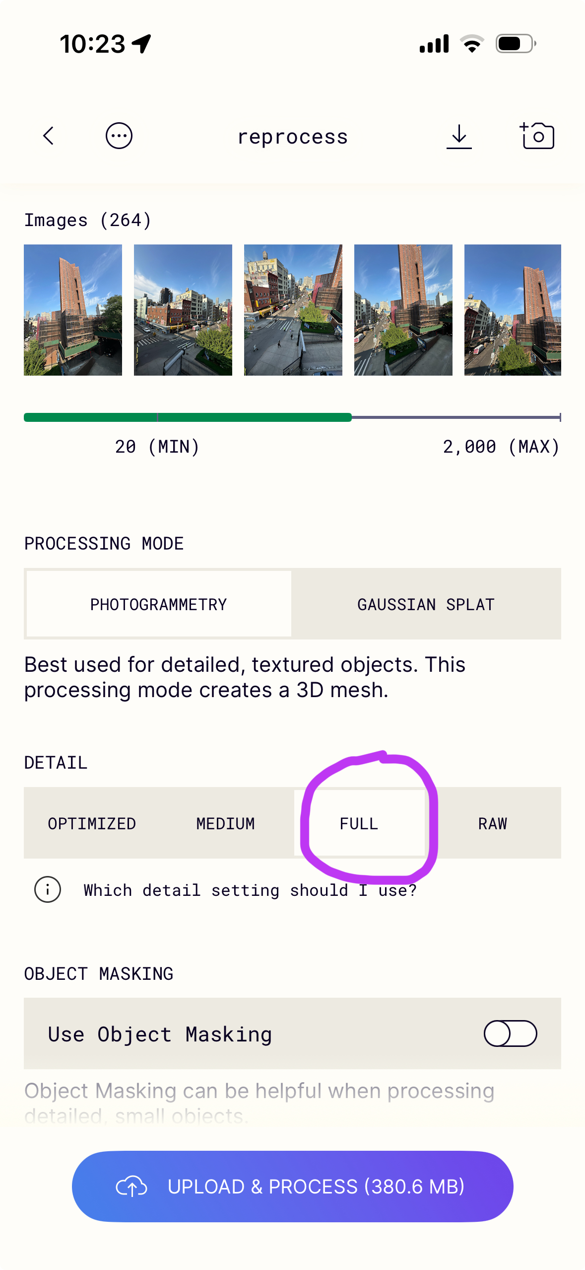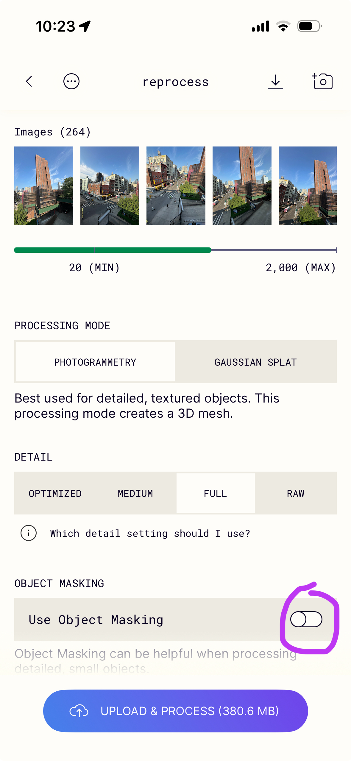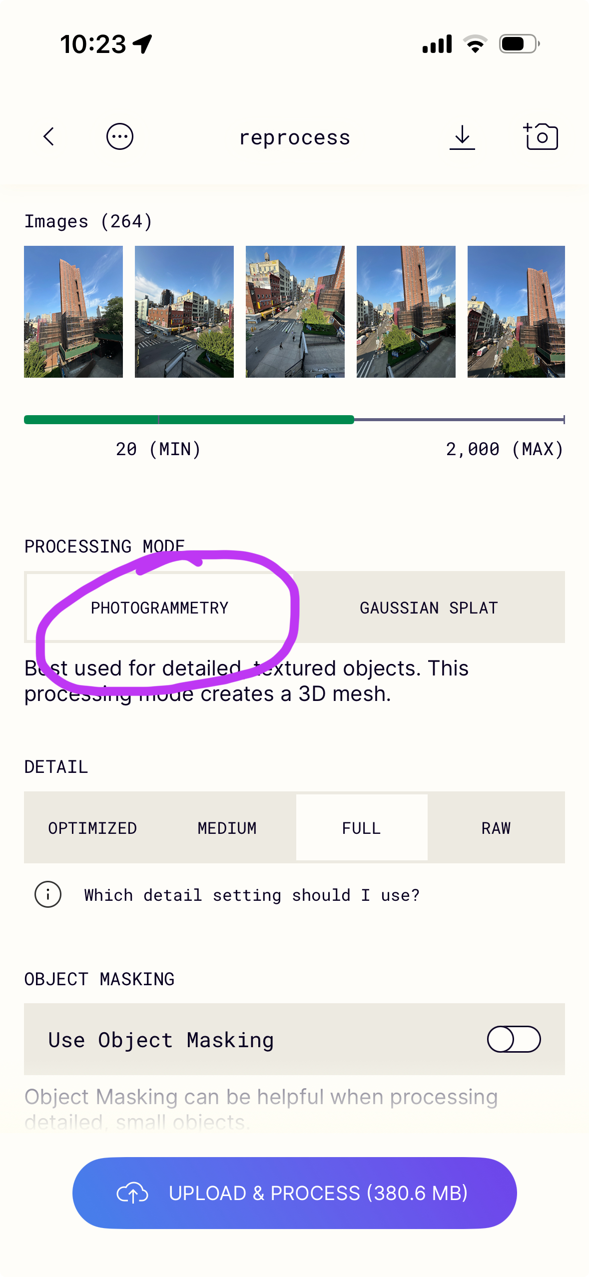 1. Make sure you are in Photogrammetry mode (not Gaussian Splat)